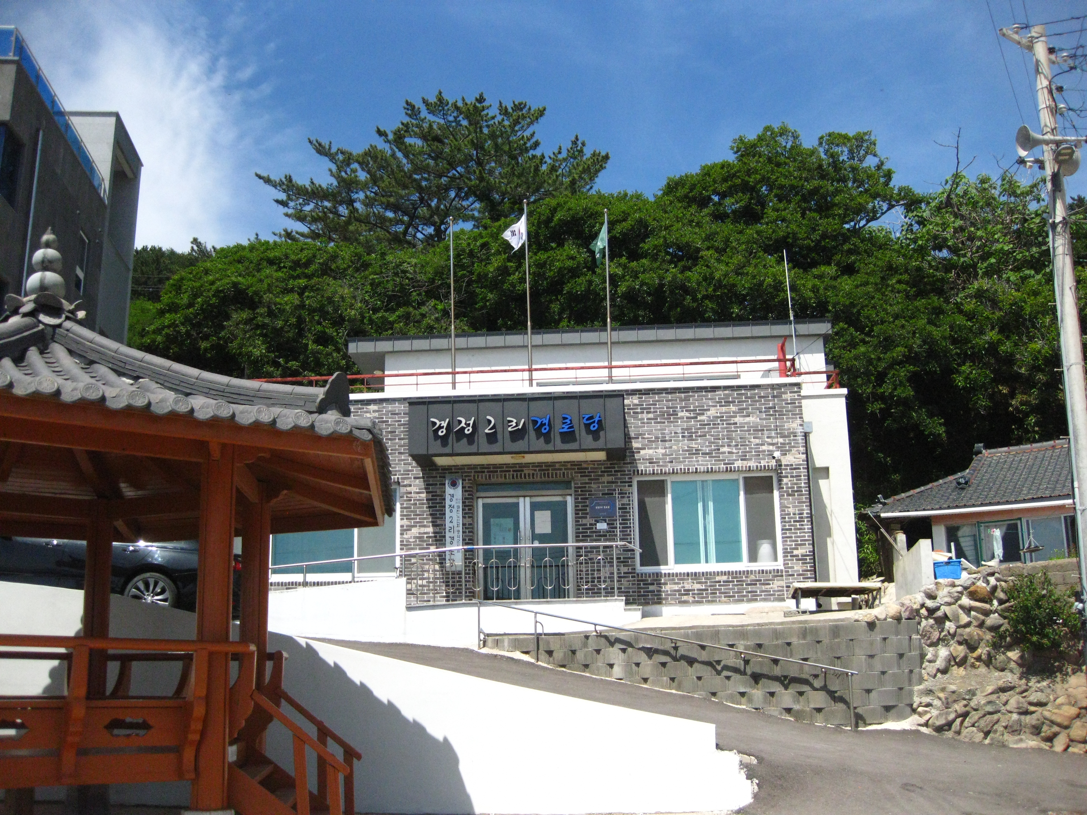 축산면 경정1리 입구에는 대게원조마을 조형물이 세워져 있다. 이 동네 이름인 차유(車踰) 마을의 내력과 이곳에서 잡은 게의 다리가 대나무와 흡사하여 대게로 불리어 왔다는 내력을 알려주고 있다. 주차장에서 조형물을 바라보면 조형물 밑의 언덕에도 돌로 만들어진 대게 형상을 볼 수 있다. 조형물을 지나 해변으로 내려가는 길에는 돌나물과의 땅채송화가 군락을 이루고 있었다. 파도가 칠 때는 바닷물을 뒤집어쓸 수 있는 곳에서 군락을 이루고 있는 것이 신기하다.