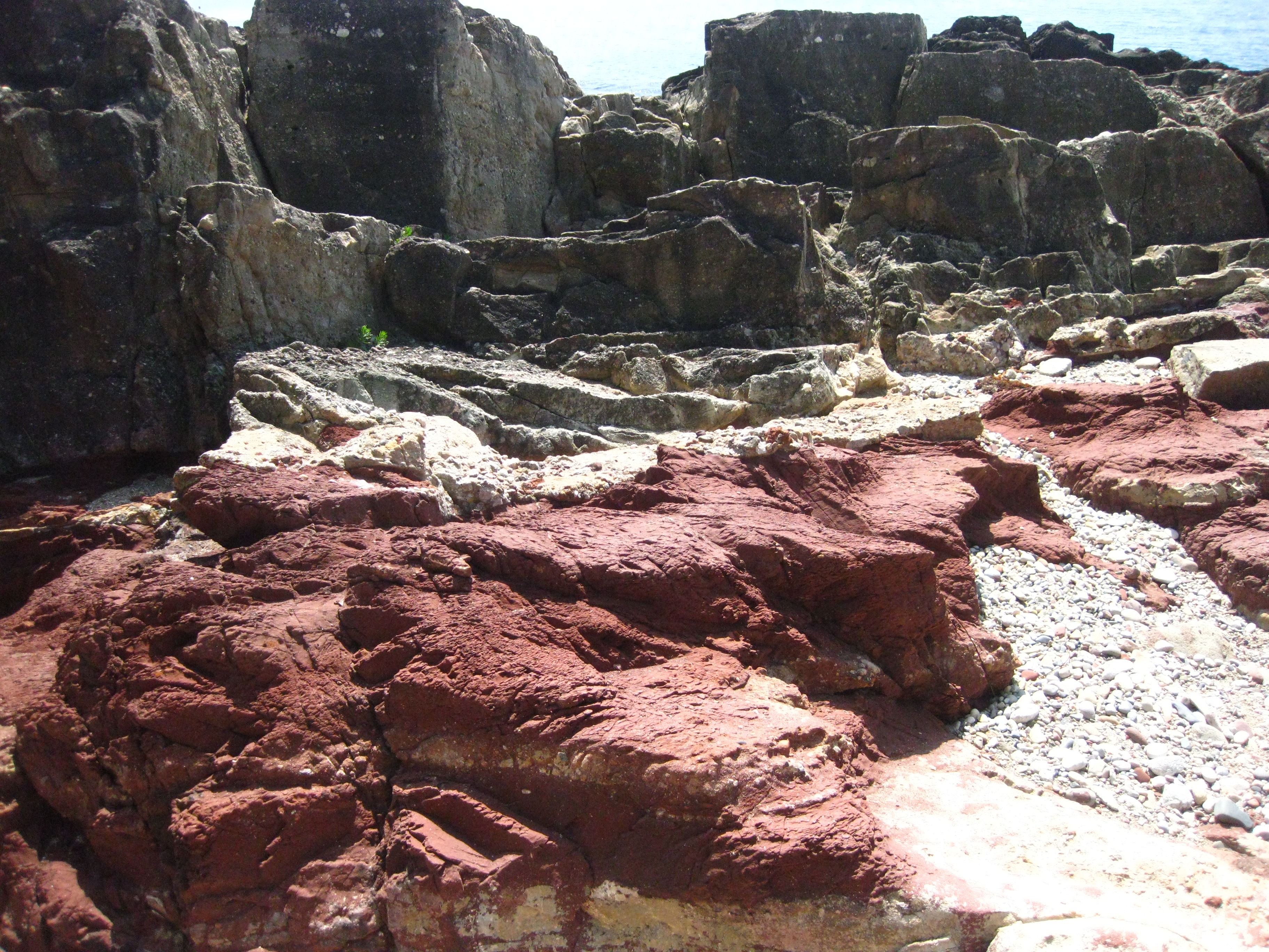 해변을 걷다 보면 붉은 빛을 띠는 바위와 밝은 빛을 띠는 바위를 만날 수 있고, 자갈 등이 박혀 있는 바위들을 만나게 된다. 경정리 해안에 관한 안내판에 따르면, 붉은색 바위 지층은 알갱이가 고운 진흙으로 형성된 퇴적암의 일종인 이암(泥岩)이며, 이곳의 이암은 붉은색을 띠고 있다. 밝은색을 띠는 사암(砂岩)은 석영이나 장석으로 이루어진 퇴적암이다. 걷다 보면 자갈 등이 박혀 있는 바위를 만나게 되는 데 이 바위는 운반작용을 통해 퇴적된 암석인 역암(礫岩)이다.