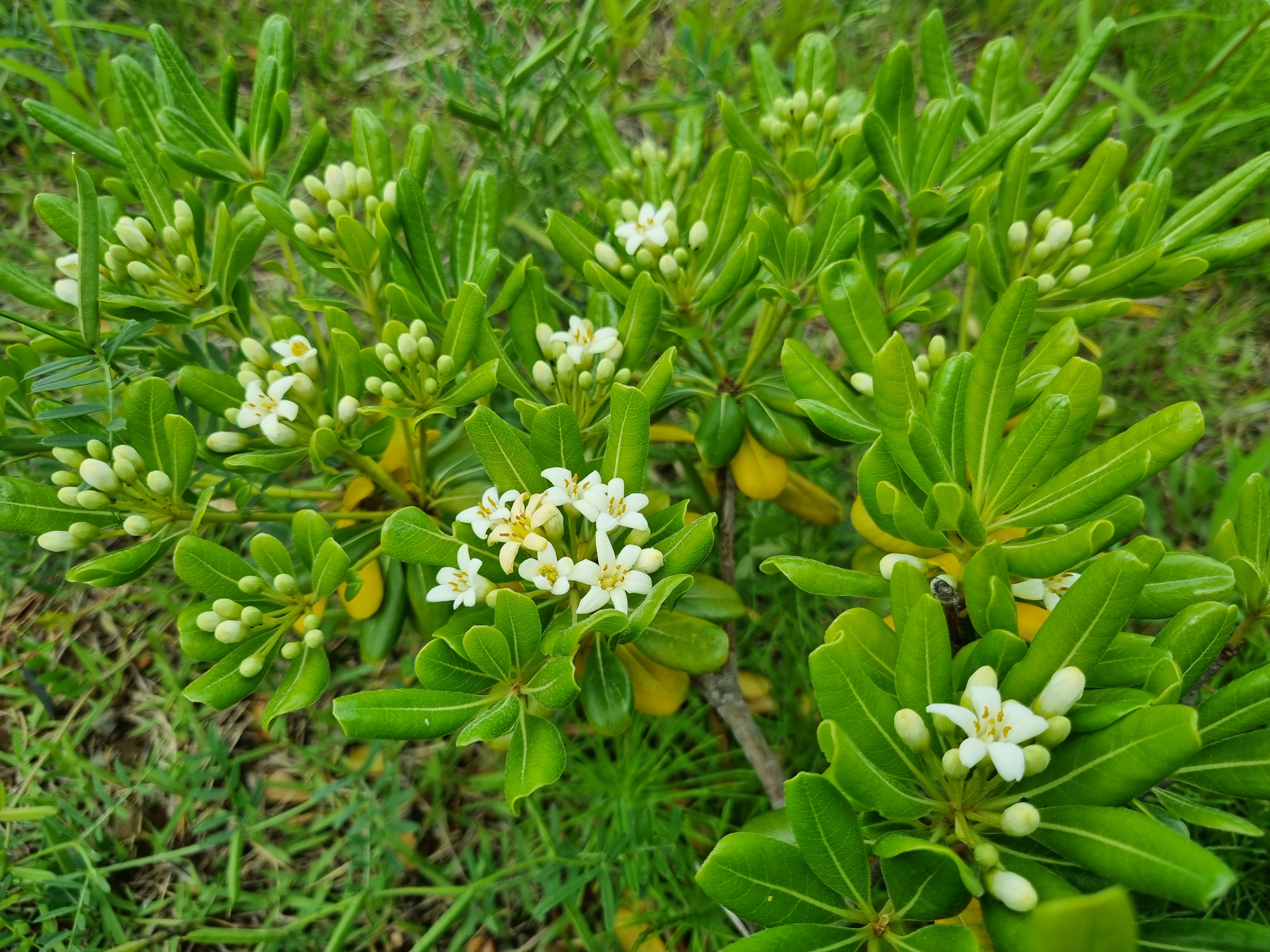 2025년 5월 11일 한밭문회원의 문화탐방에 참여하여 둘러본 포항시 연오랑세오녀테마공원에서 막 꽃이 피어나는 돈나무를 담았다. 작년 11월에 남파랑길 부산 구간 6코스를 걸으며 부산광역시 강서구 해안길에서 열매가 터지면서 빨간 종자가 튀어나온 모습을 올린 후 한번 더 돈나무를 소개한다. 대전 지방에서는 관상수로나 볼 수 있는 돈나무가 이곳 테마공원에서는 노지에서 자라며 꽃을 피우고 있어서 정이 간다. 나무 이름이 돈(money)를 연상시키는 돈나무라서도 그렇다.