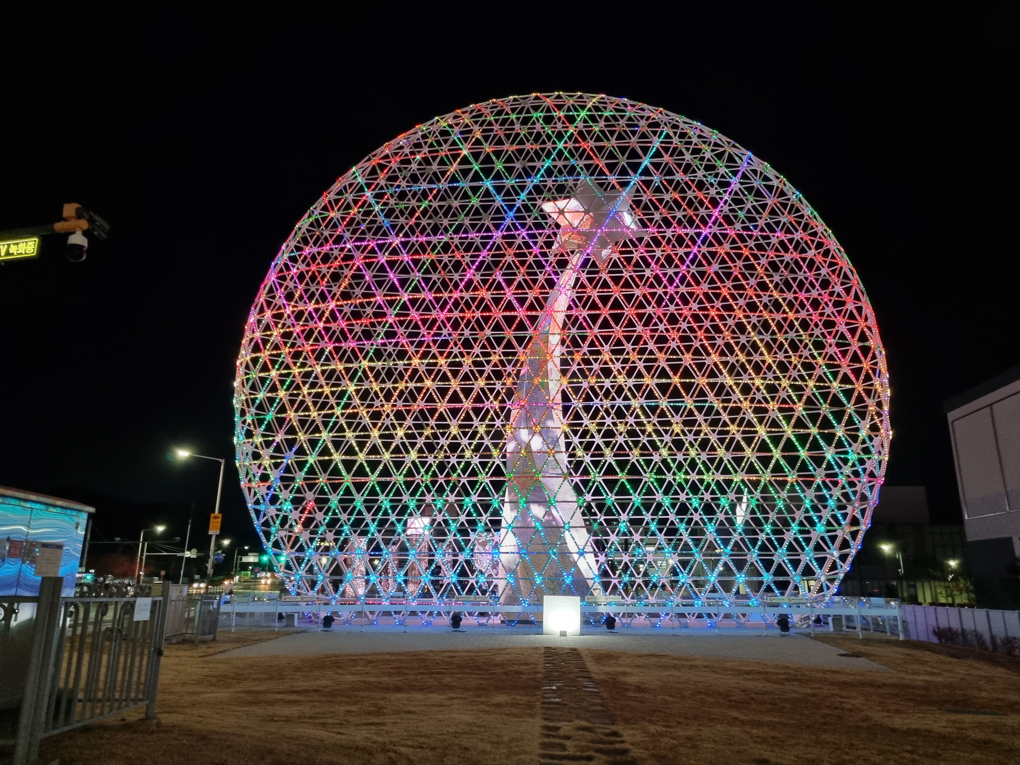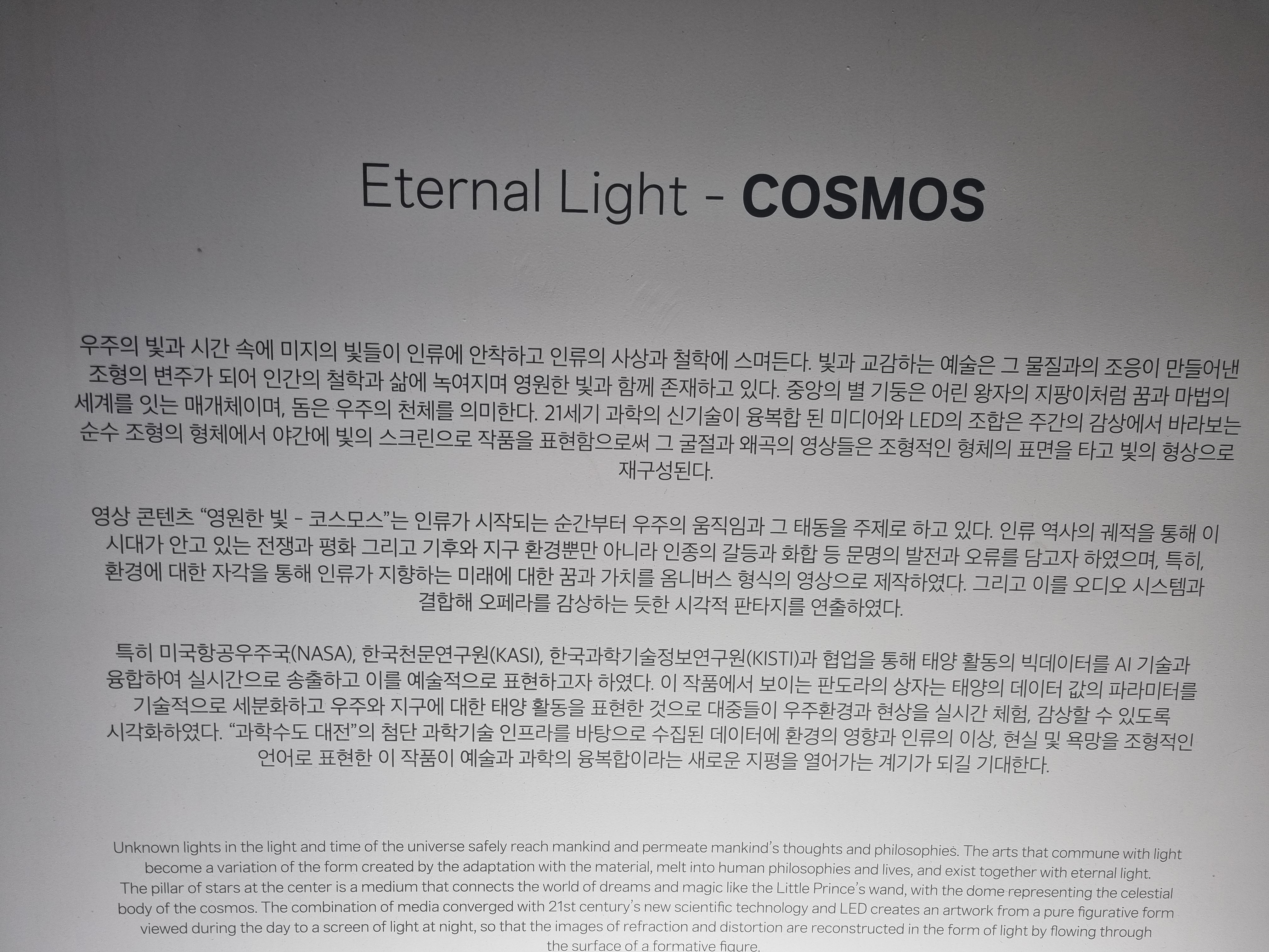 2025년 11월 21일(토)에 유성도서관에 가는 길에 대전광역시 유성구 도룡동 엑스포공원 사거리에 있는 Eternal Light - COSMOS (영원한 빛 - 코스모스)를 담았다.