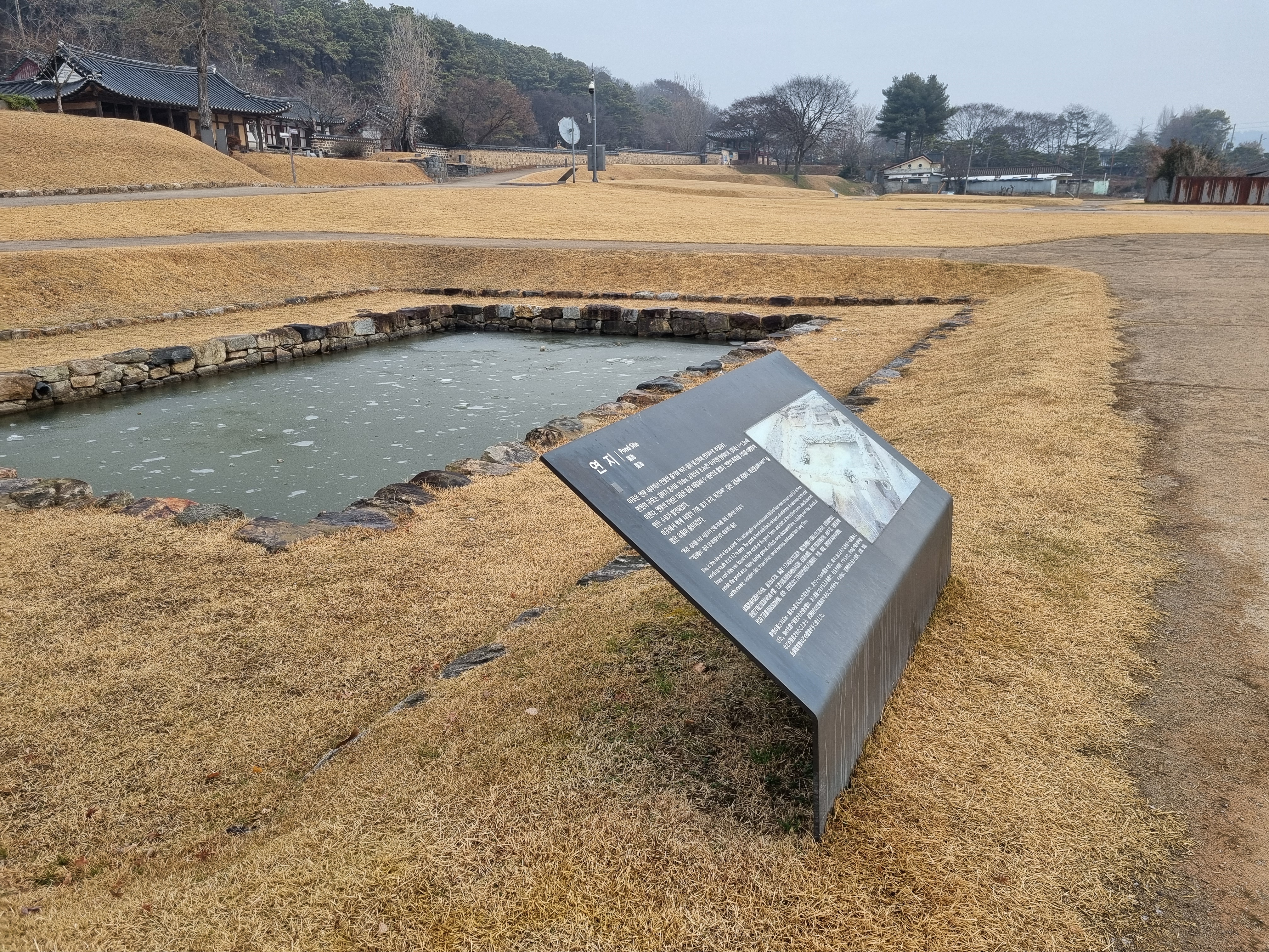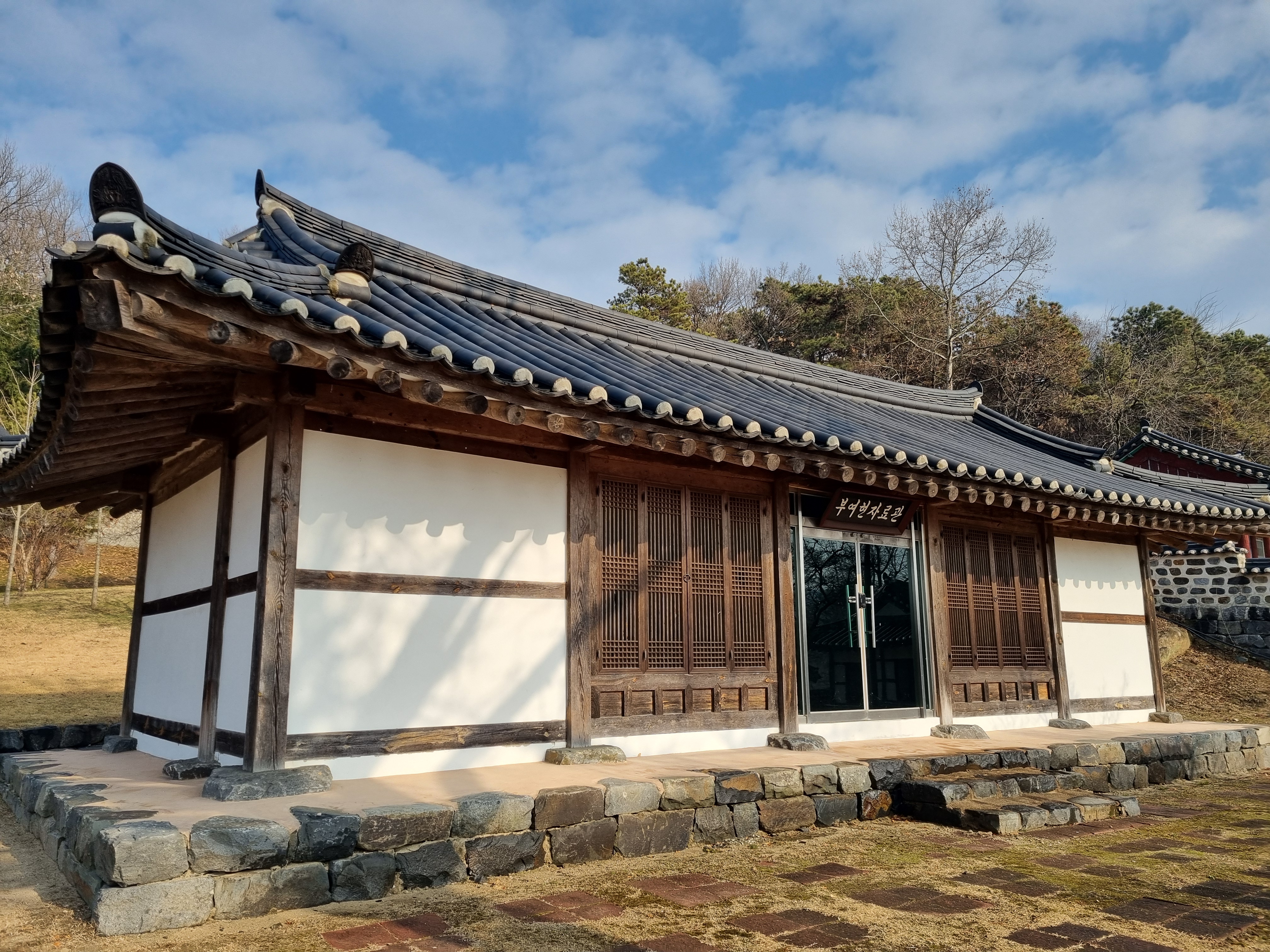 2025년 12월 18일(일) 충남 부여군 부여읍 관북리 33번지 외 부소산성 남쪽 기슭에 있는 부여 관북리 유적에 다녀왔다. 부여 관북리 유적은 1983년 9월 충청남도 기념물 전백제왕궁지(傳百濟王宮址)로 지정되어 있다가, 2001년 2월에 사적으로 승격 지정되었다. 현재 부소산성 서문으로 올라가는 길을 중심으로 동쪽에는 구 부여박물관 건물로 사용되었던 흰색 건물이 부소산을 꽉 메운 채로 남아있고, 조선시대 부여현의 관아 건물로 사용되었던 동헌, 객사, 내동헌 등이 남아있다. 동헌 건물 옆에는 홍가신, 허목, 채제공의 영정을 봉안하고 제사를 모시는 사당인 도강영당이 있다. 서쪽 방향의 구렛나루 쪽에는 대형전각건물지와 목곽수조, 목곽창고 등이 있다.
