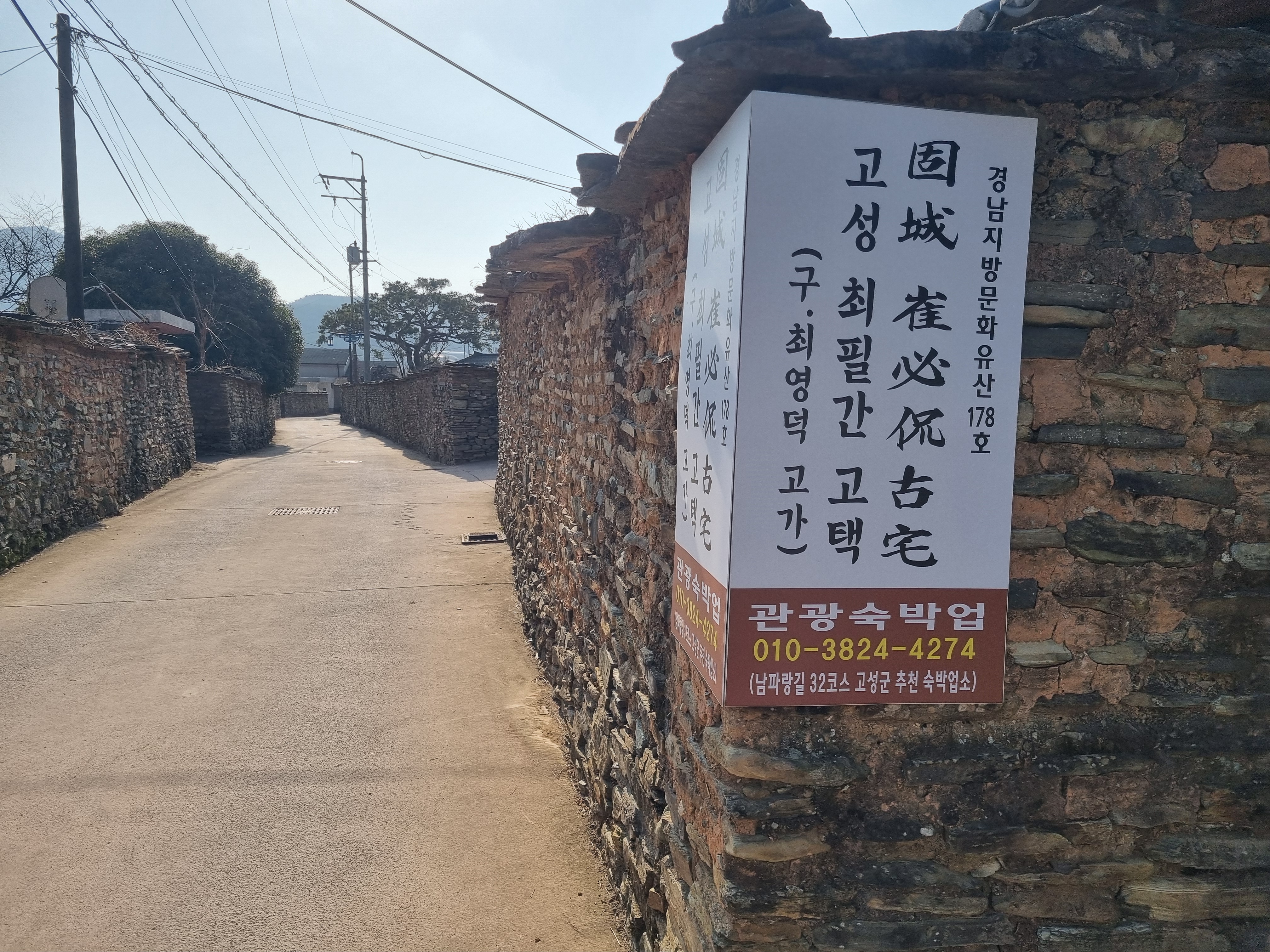 2026년 1월 18일(일)에 대전한겨레산악회를 따라 남파랑길 3구간(고성&통영 구간) 32코스를 걸으며, 전주 최씨 안렴사공파의 집성촌인인 경남 고성군 하일면 학림리 917-1번지 일원에 있는 학동마을 옛 담장을 둘러보고, 학림리 927에 있는 전주 최씨 종가와 바로 옆의 최필간 고택을 둘러보았다. 남파랑길을 걸으며 사전 지식도 없이 동네에 도착하다 보니 제대로 보지를 못한 아쉬움이 있다. 옛 담장은 국가유산청에서 관리하는 국가등록문화유산이었고, 종가 주택은 경상남도 민속문화유산으로 등록되어 있어서 주인의 양해를 받아 둘러 볼 수 있었는데 아쉬웠다.