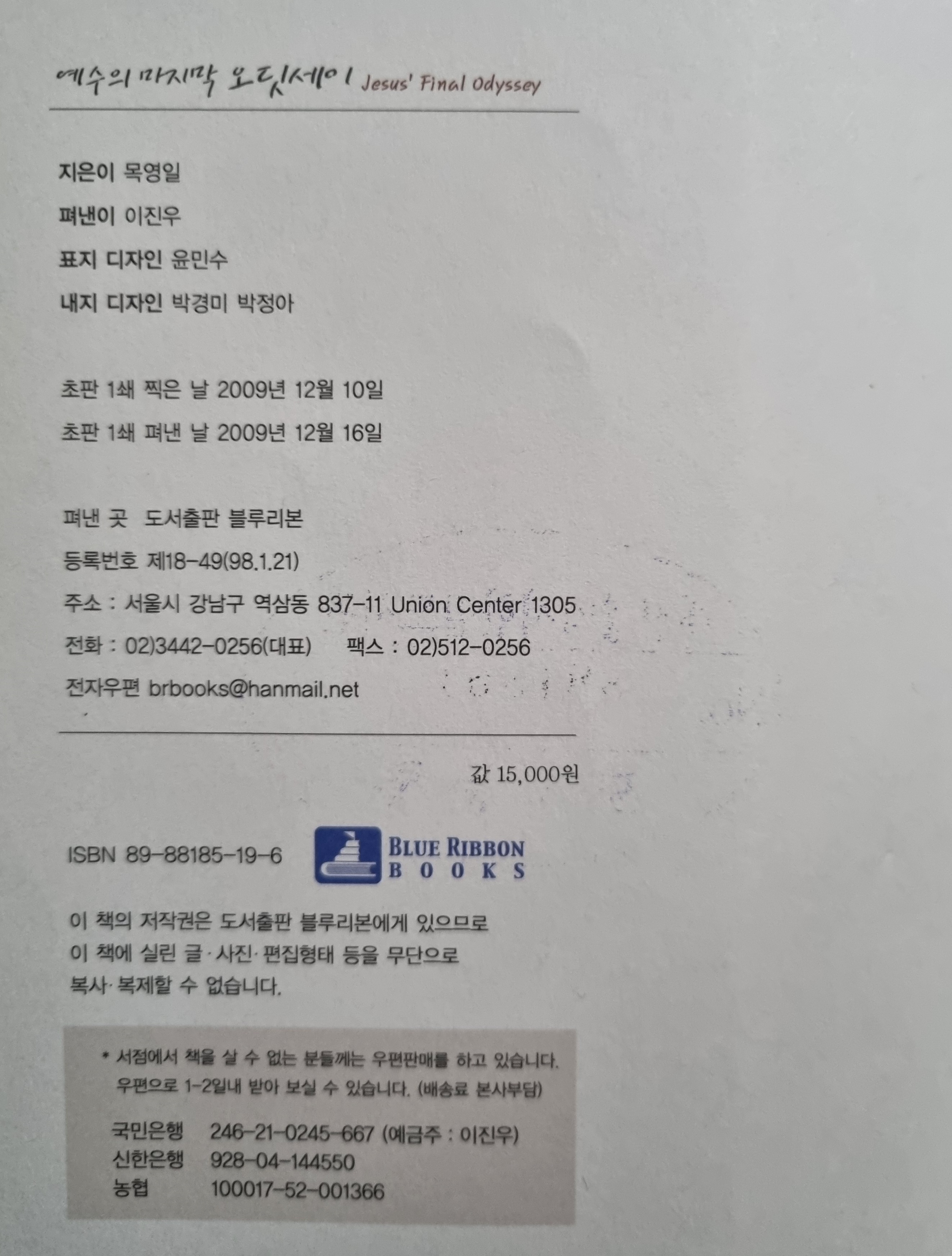 목영일(2009), 『예수의 마지막 오딧세이』, 서울: 도서출판 블루리본, 초판1쇄 2009. 12. 16.