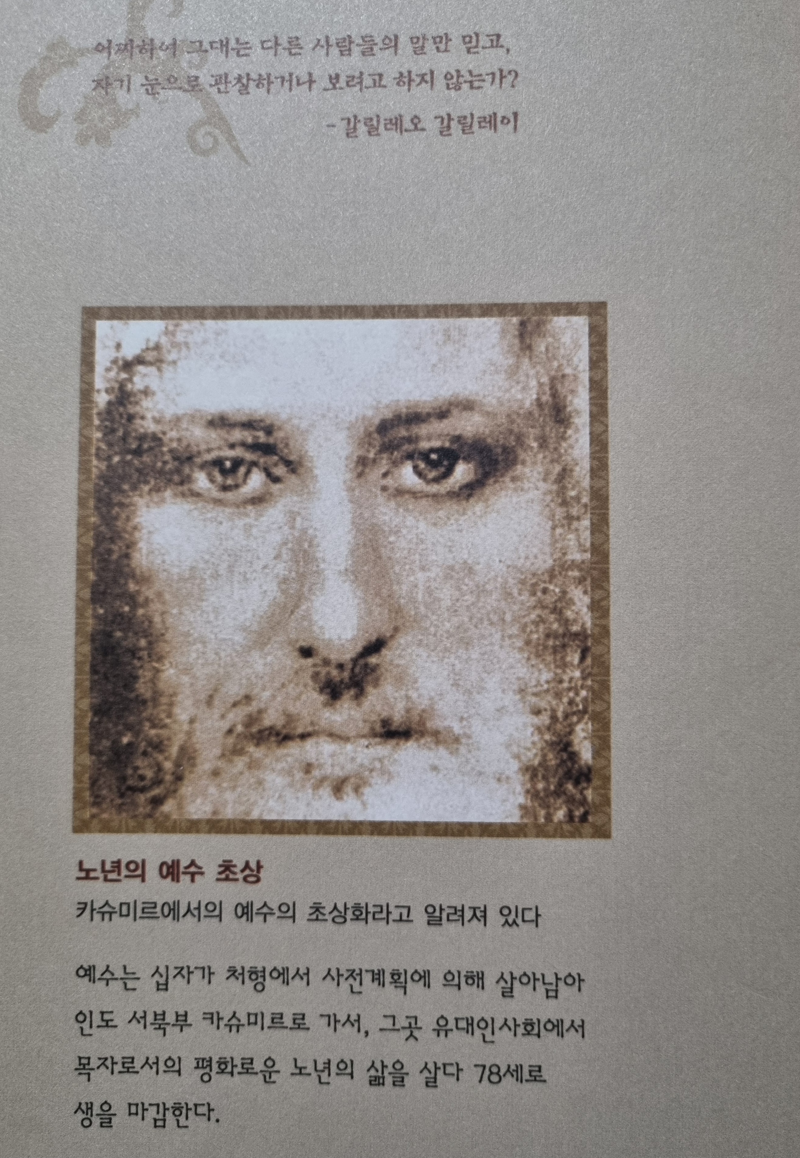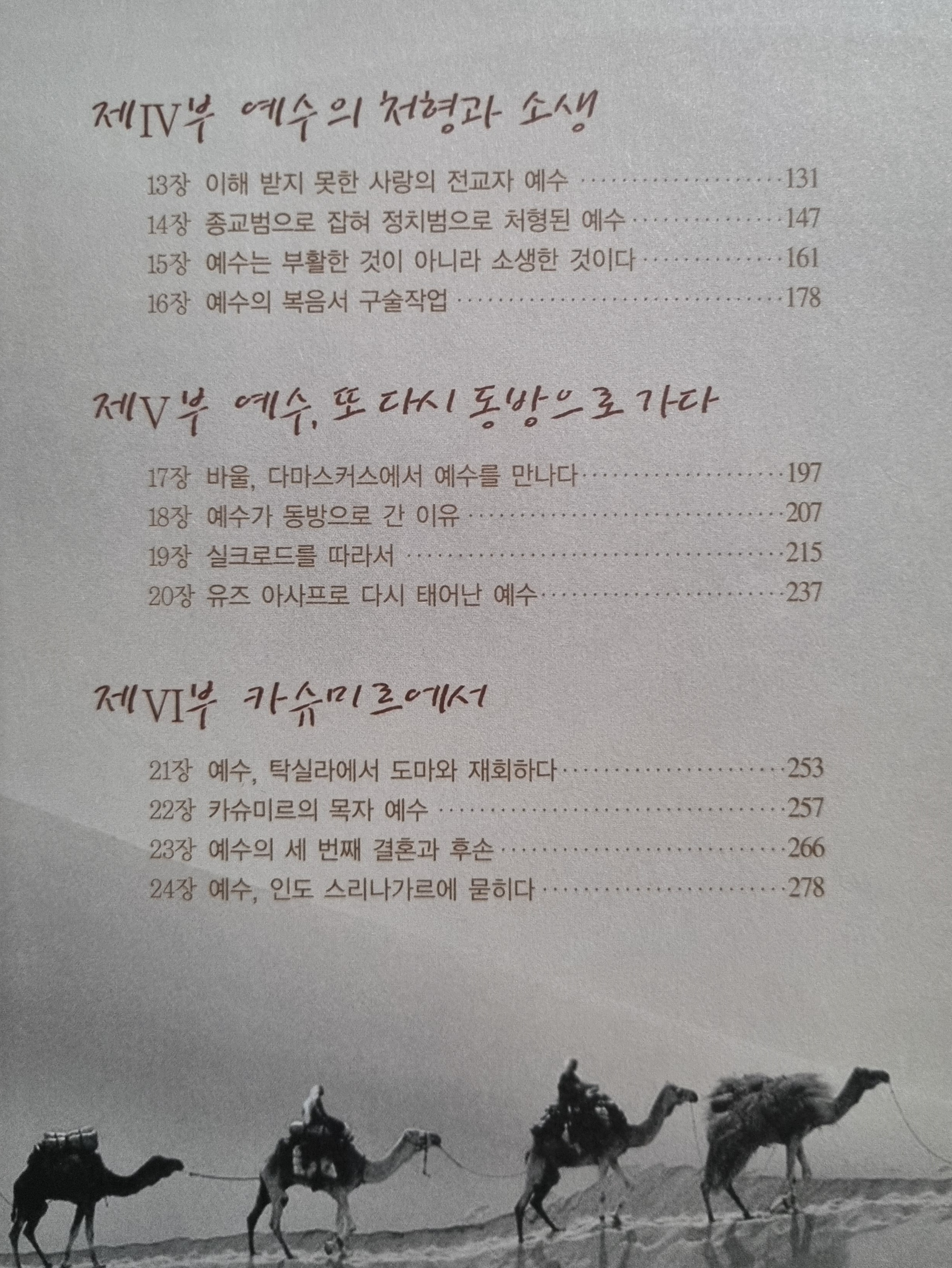 2024년 2월 23일에 화학공학 박사로 국내 연구소와 대학 등에서 근무하셨던 목영일 박사가 지은 역사소설 『예수의 마지막 오딧세이』를 읽었다. 예수님이 십자가에서 돌아가신 것이 아니고 십자가형을 받으신 후 소생하셔서 제자들과 선교활동을 하시다가 서기 58년 봄에 실크로드를 따라 인도로 이동하여 그해 겨울에 인도 탁실라에 도착하셨다고 한다. 그 후 다시 카슈미르 지방에서 선교활동을 하시다 서기 71년, 예수의 나이 78세에 임종하셨다는 이야기이다.