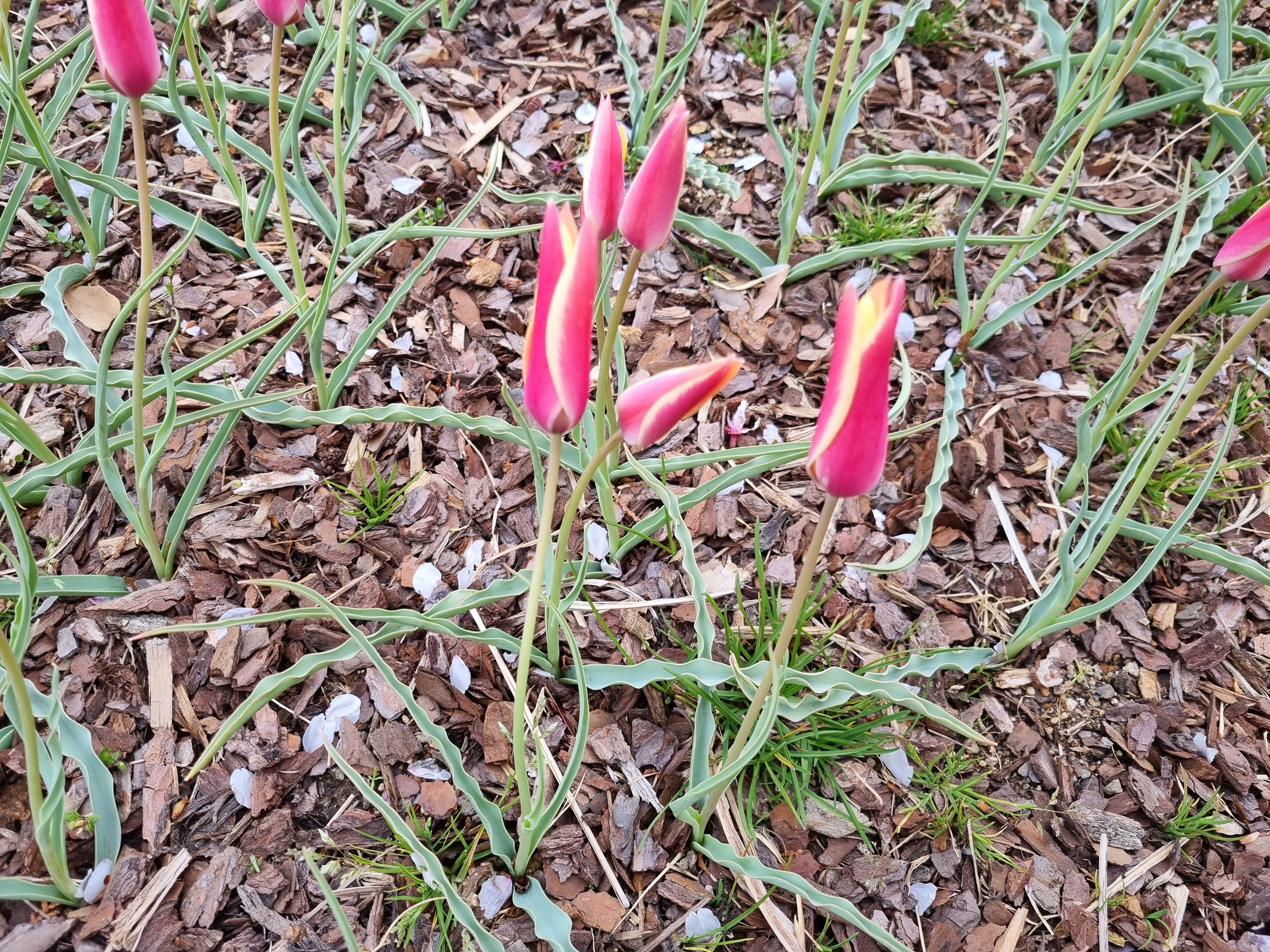 2025년 4월 13일(일) 한밭문화원 4월 문화탐방에 참여하여 순천만국제정원에 갔다가 수많은 종류의 원예종 튤립이 심어져있는 화단의 한쪽에 작은 꽃봉우리의 야생 튤립을 담았다. 튀르키예 등 소아시아 원산으로 다년초이며 비늘줄기는 난형이고 원줄기는 원주형이며 곧추서고 갈라지지 않는다. 잎은 밑에서 서로 연속하여 호생하며 밑부분으로 원줄기를 감싸고 길이 20~30cm로서 넓은 피침형 또는 타원상 피침형이며 가장자리는 물결형이고 안쪽으로 말리며 청록색 바탕에 흰빛이 돌지만 뒷면은 색깔이 짙다.