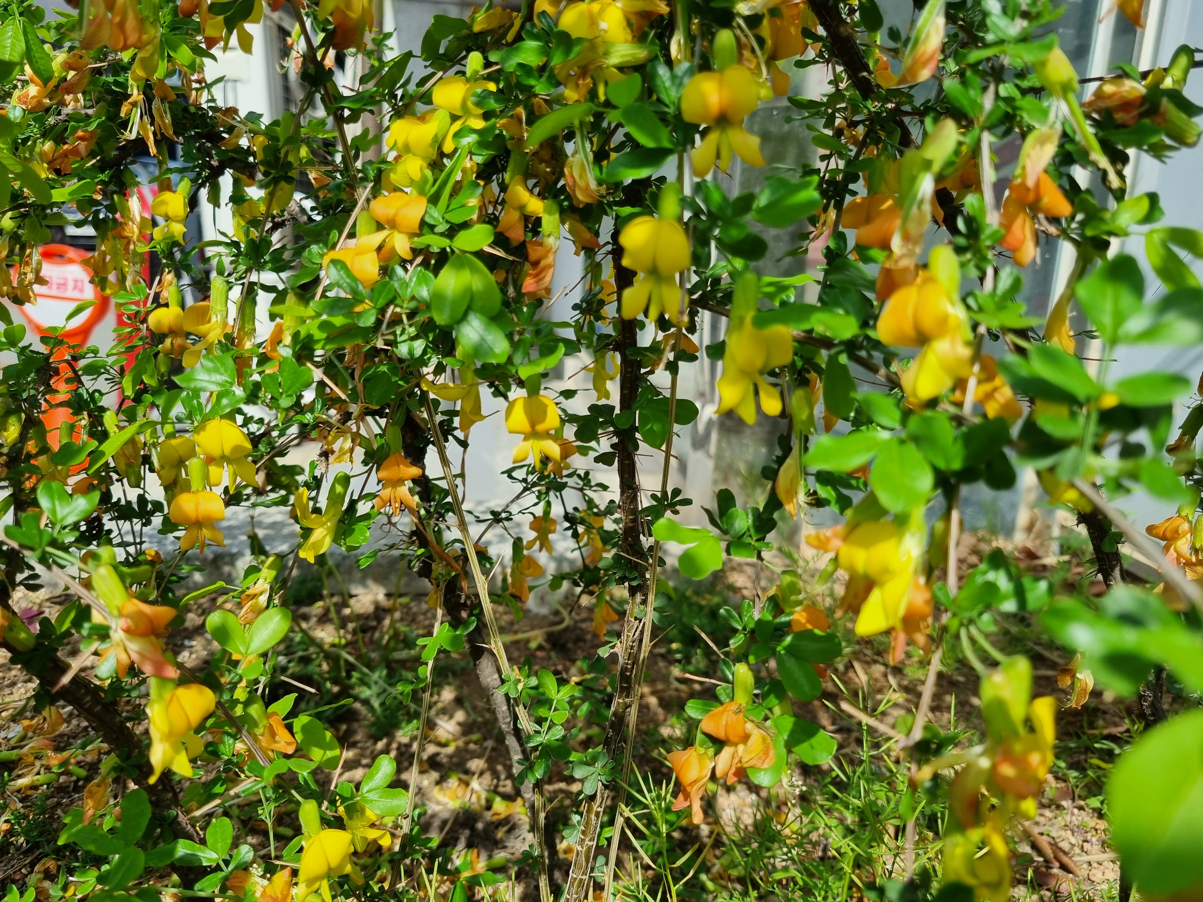 2025년 4월 21일 대전광역시 서구 갈마동에서 담았다. 예전에는 집안 마당에 약용으로 오가피나무와 함께 심었던 골담초인데 요즘은 보기 쉽지 않다. 경북 및 중부지방의 산지에서 자라는 낙엽관목이며 관상용으로 심는다. 높이가 2m에 달하고 위를 향한 가지는 사방으로 비스듬히 퍼지며 5개의 능선이 있고 회갈색이며 털이 없다. 잎은 호생하며 짝수 2회 우상복엽이며 엽축 끝은 대개 가시로 되고 소엽은 4개로 도란형 또는 타원형이며 두껍다. 길이 2.5~3cm로서 표면에 윤채가 있고 뒷면에 털이 없으며 턱잎은 길이 4~8mm의 가시로 된다.