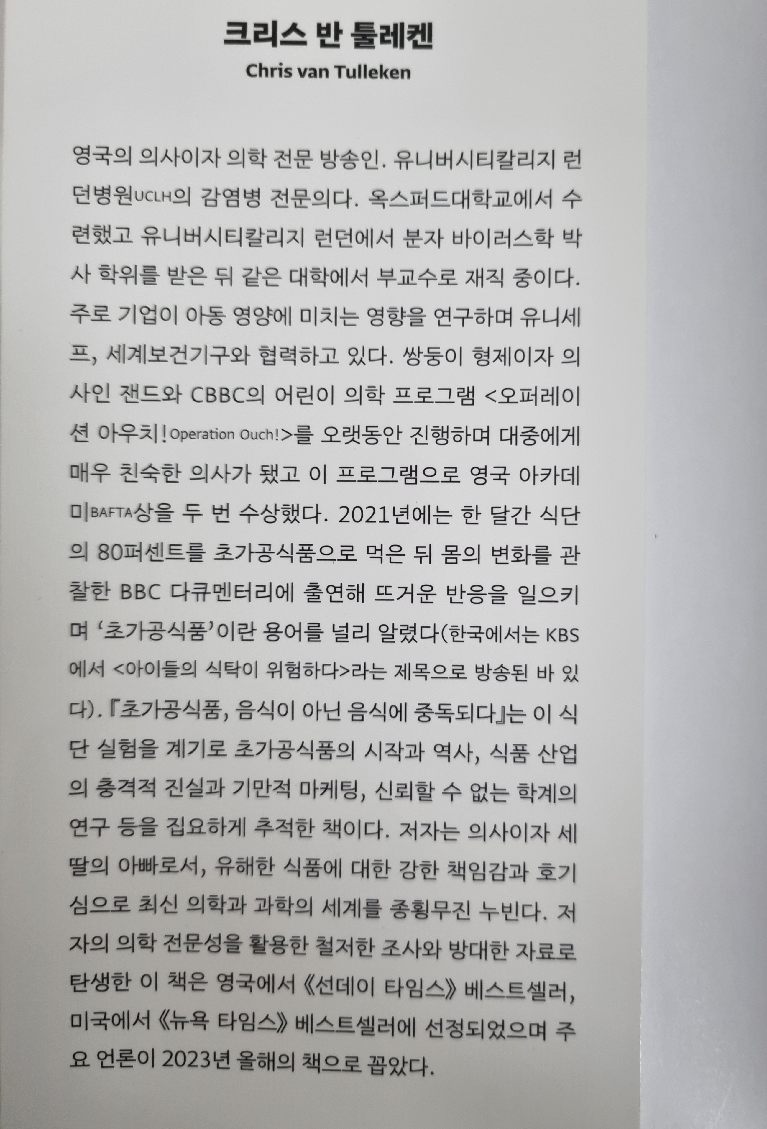크리스 반 툴레켄 지음, 김성훈 옮김, 『초가공식품, 음식이 아닌 음식에 중독되다』, 경기도 파주시: 웅진지식하우스, 초판1쇄 2024. 10. 5.