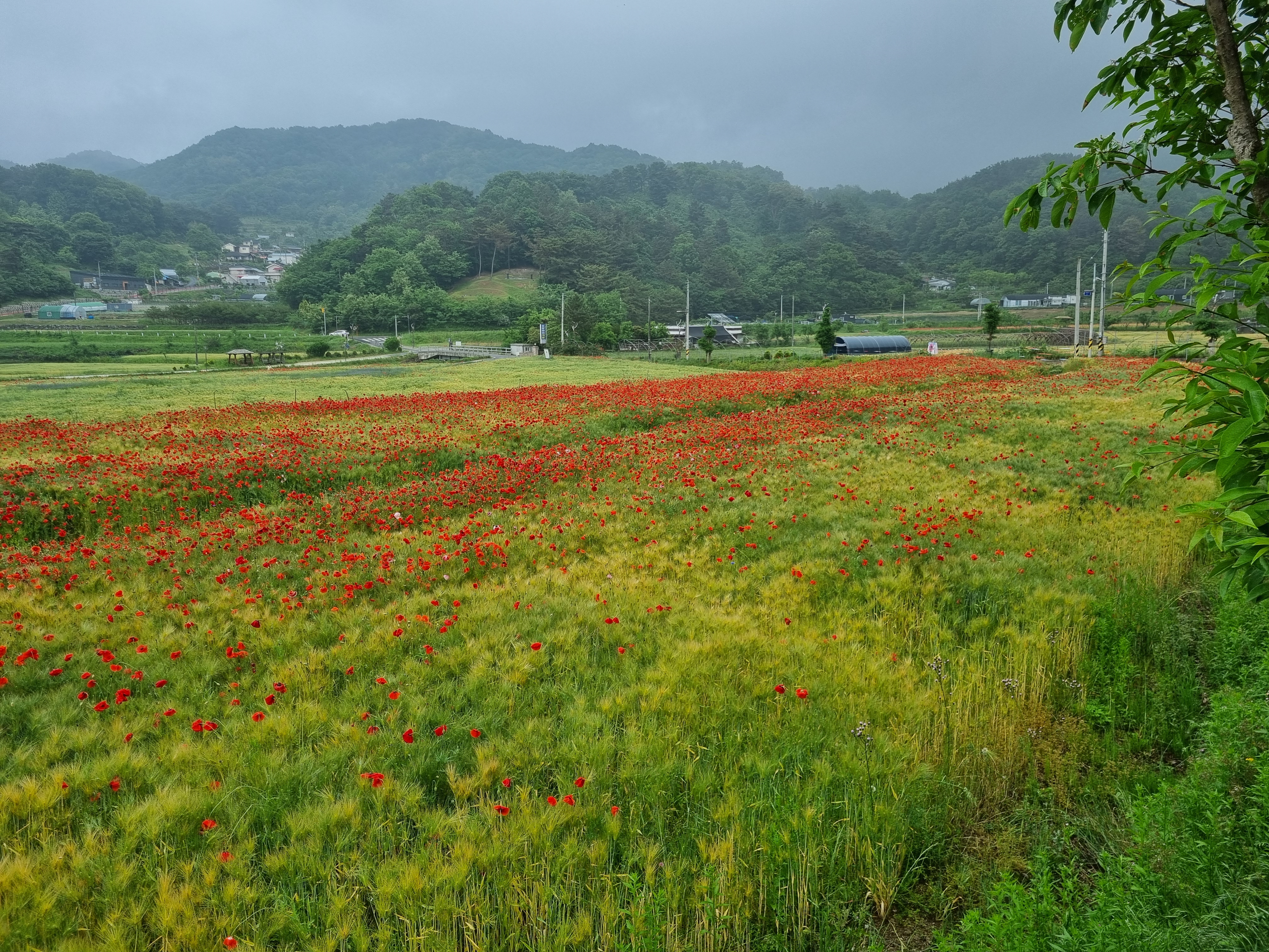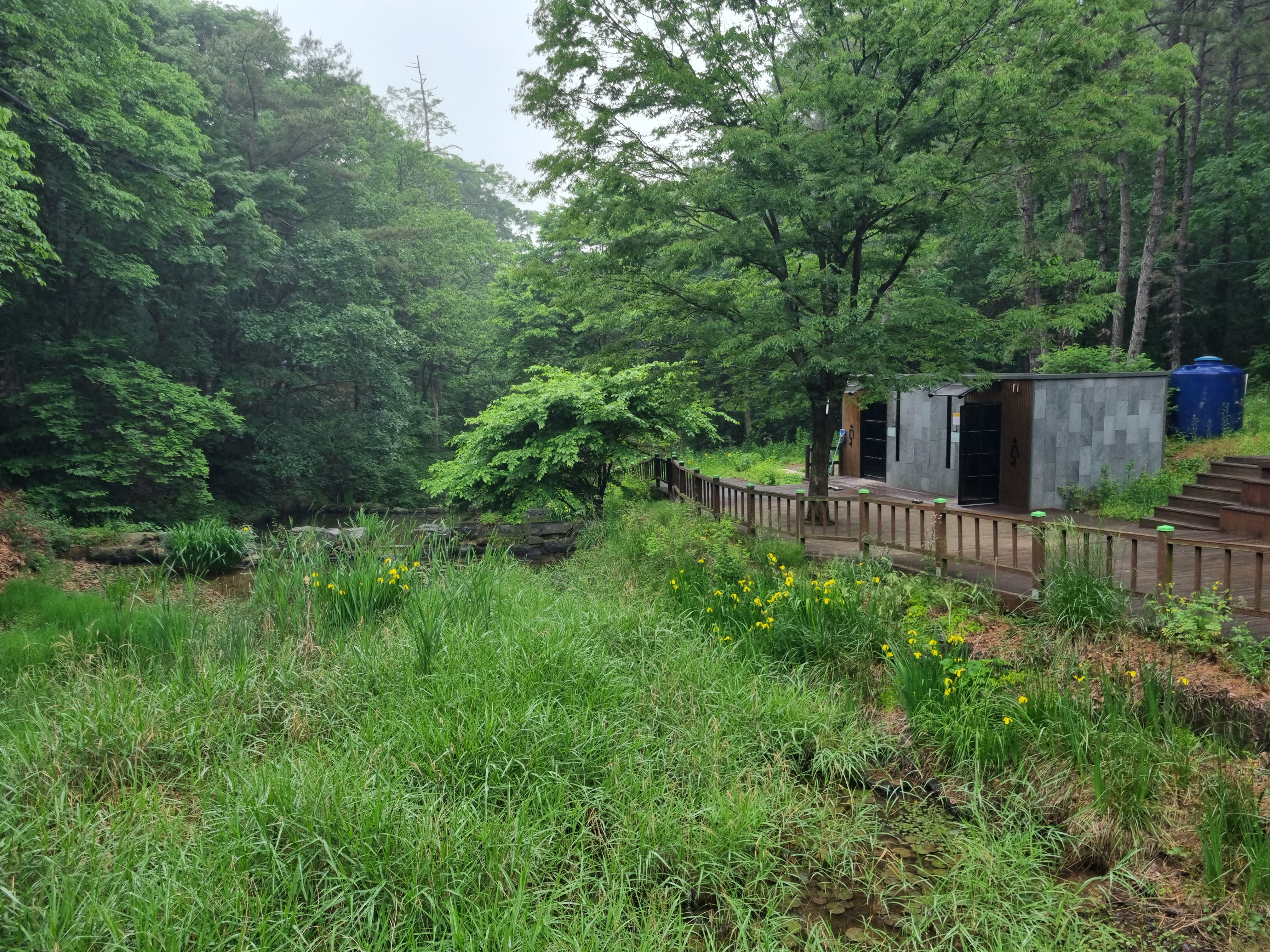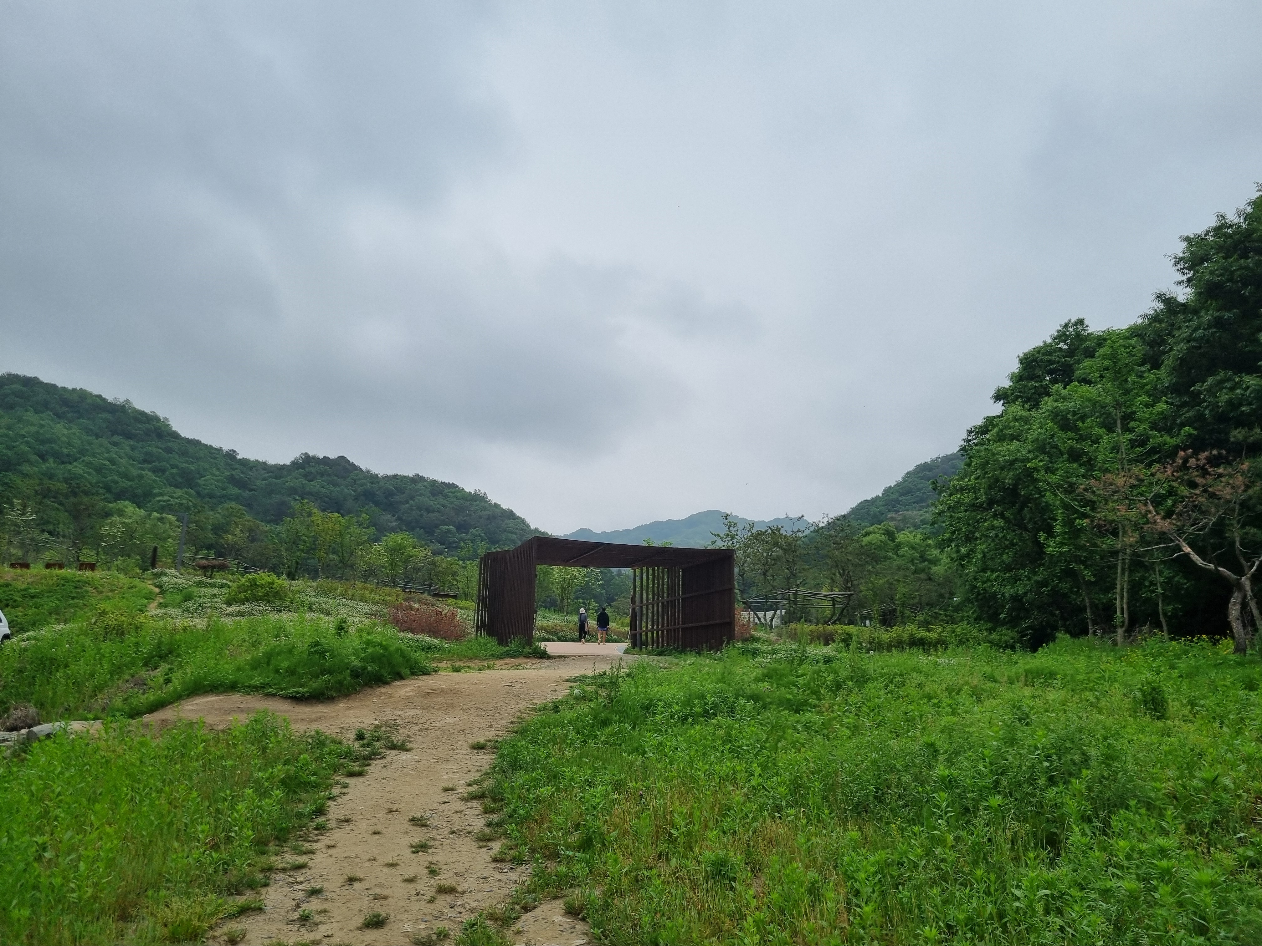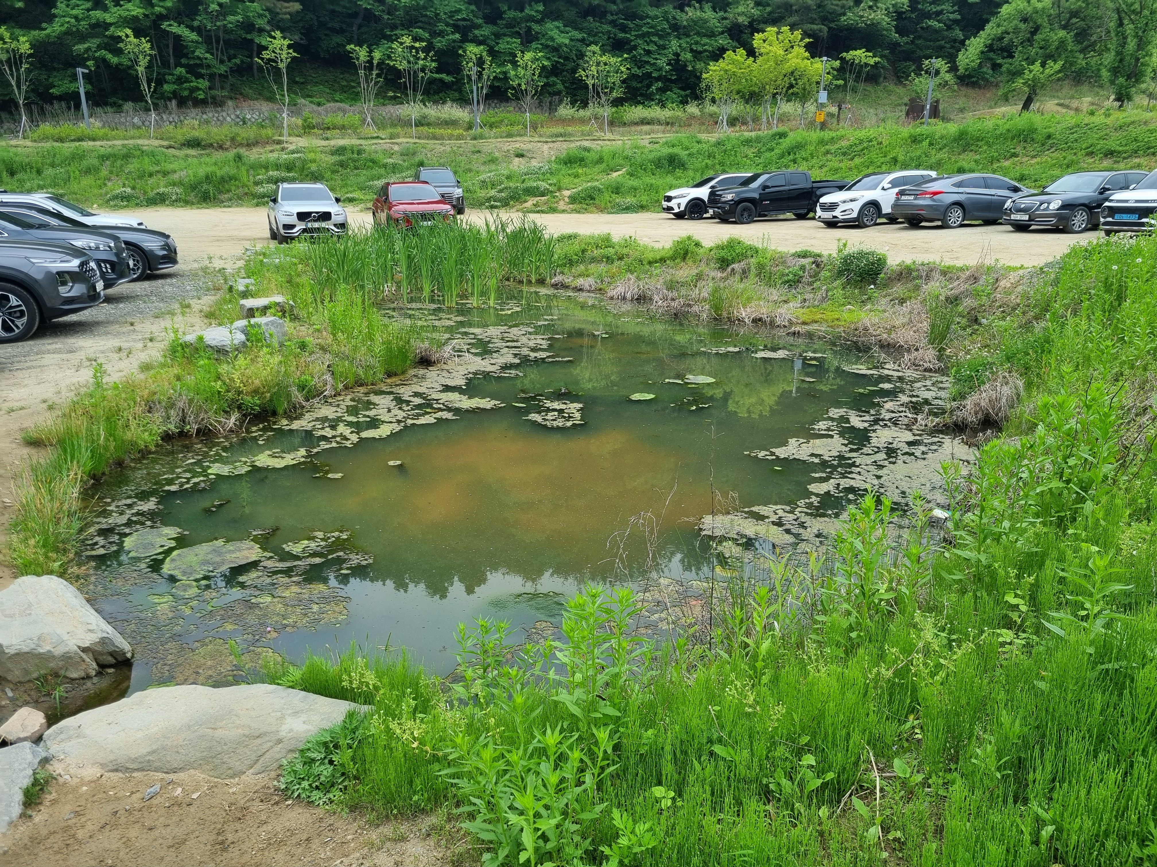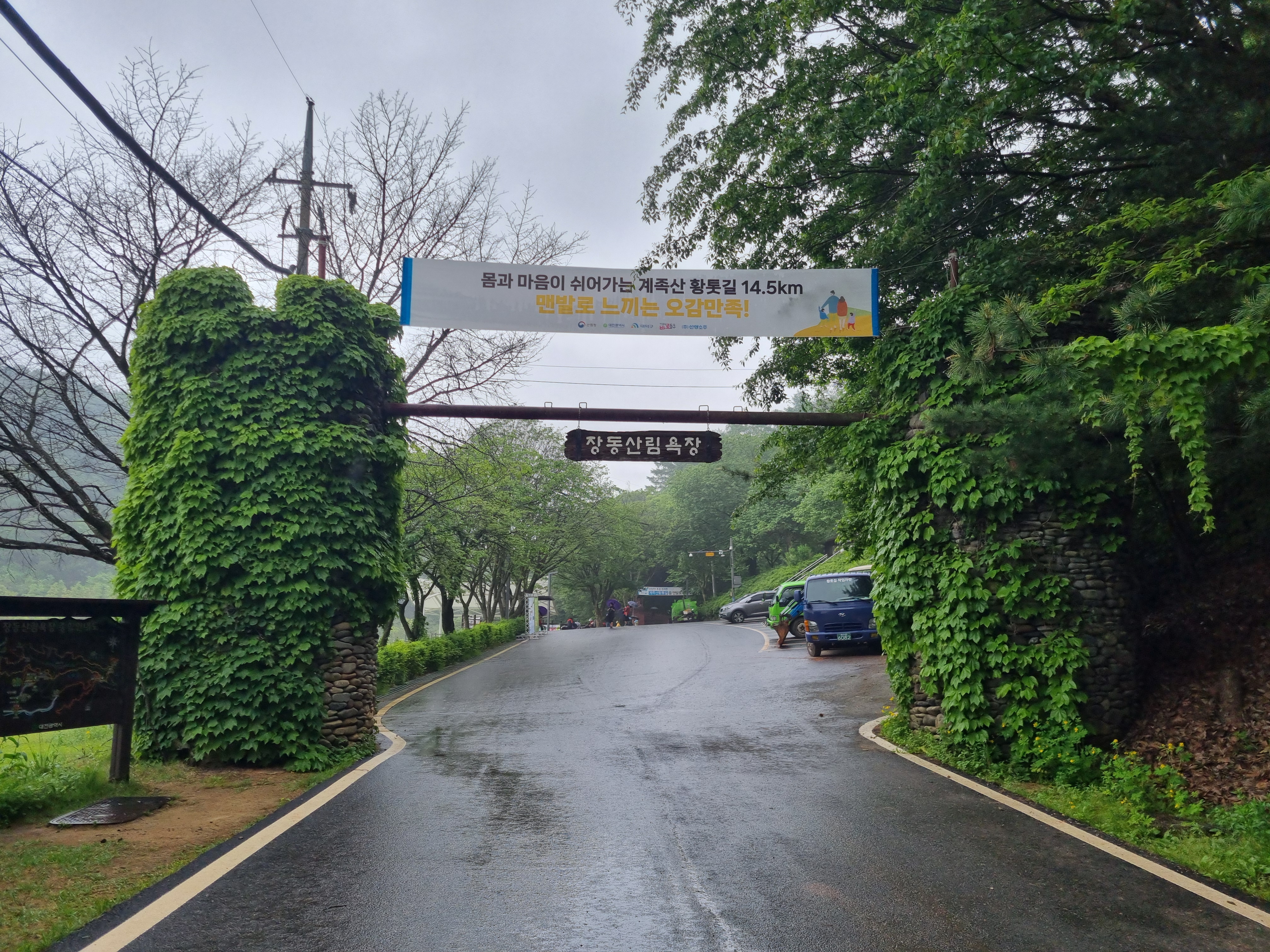 025년 5월 22일(목)에 회사에서 월간회의를 마치고 단체로 계족산 장동산림욕장 황톳길을 다녀왔다. 장동산림욕장 주차장에서 계족산성 밑까지 걸어갔다가 원점 회귀하였다. 오랜만에 가본 장동산림욕장은 크게 변화되어 있었다. 산디마을로 진입하는 도로 옆에 넓은 주차장이 마련되어 있고 주변이 공원으로 조성되어 있었다. 주차장에서 한참을 걸어 들어가면, 나무들 밑에 넓은 평상들이 설치되어 있던 예전의 장동산림욕장 모습을 만난다. 이곳만이 예전의 모습을 담고 있다.