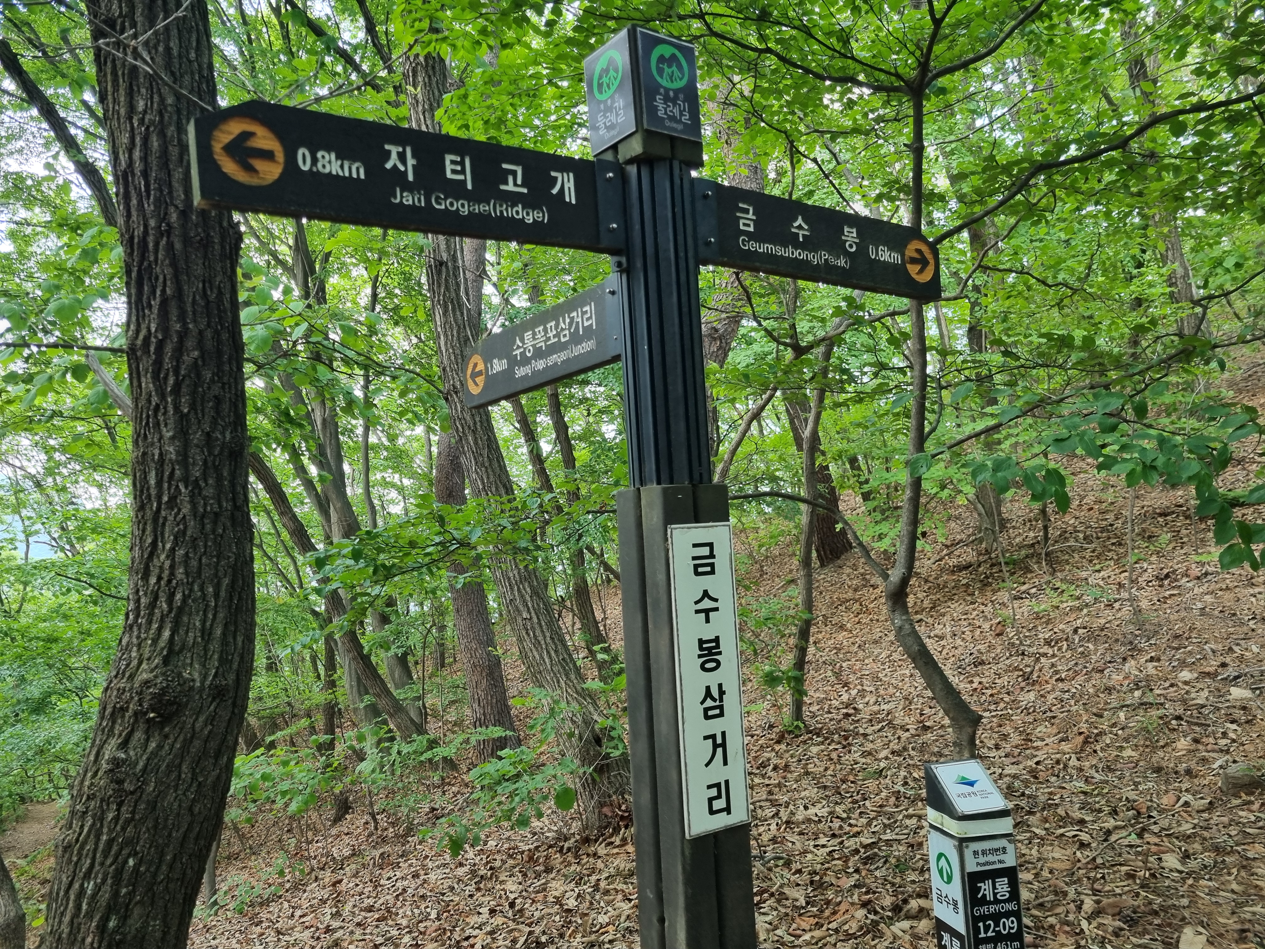 2025년 5월 25일(일)에 국립공원 계룡산 수통골에 다녀왔다. 지난 2023년 8월 13일(일)에 다녀온 후 거의 2년만에 수통골을 다녀왔다. 회사에서 잔무 처리가 조금 일찍 끝나 점심 식사를 마치고 수통골로 향했다. 도덕봉 오르는 길과 도덕봉 능선에서 백운봉 능선으로 넘어가는 내리막길이 새롭게 데크 계단길로 정비되어 있어서 편하게 갈 수 있었다.