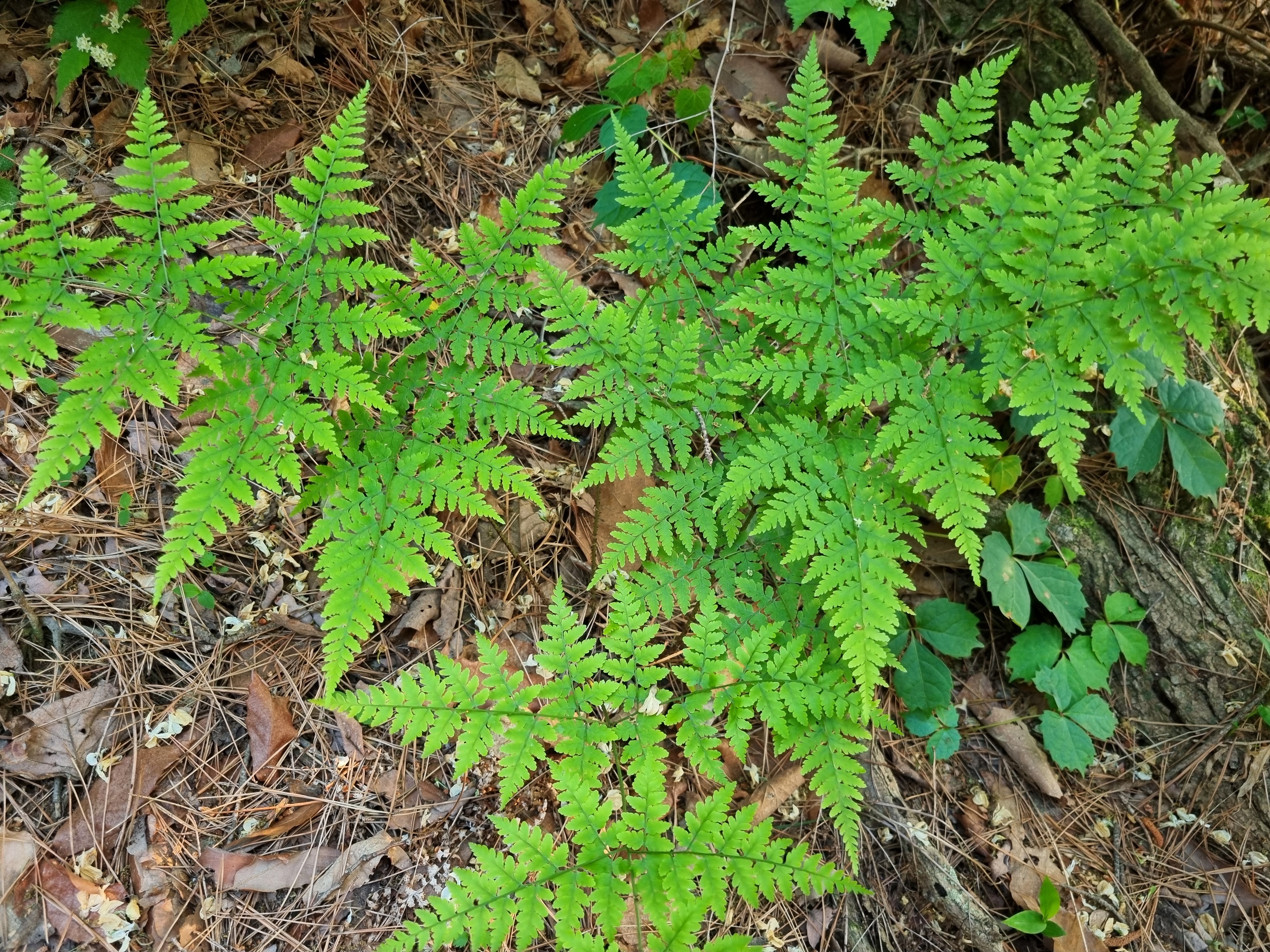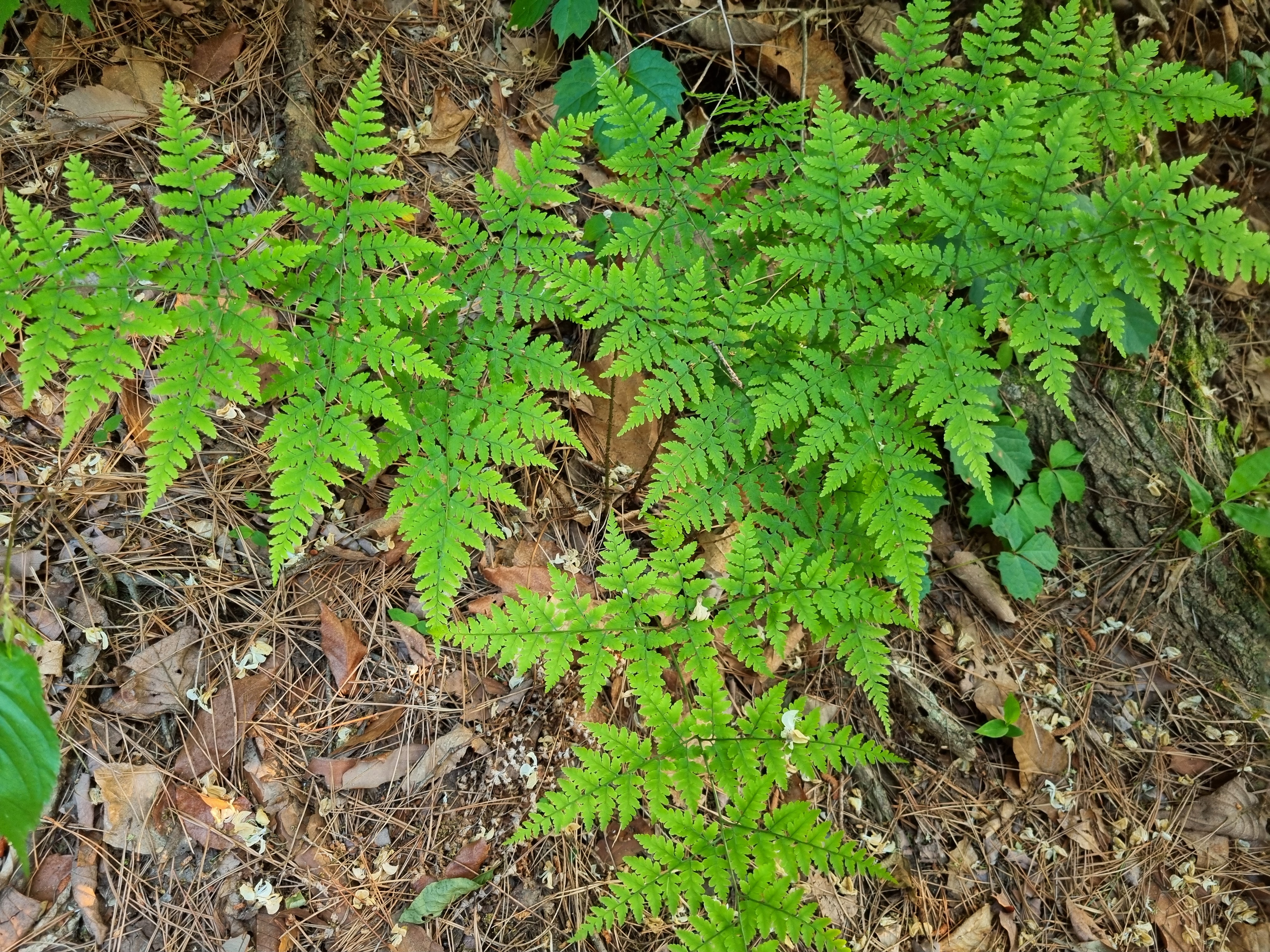 2025년 5월 25일 계룡산국립공원 수통골에서 담았다. 산지에서 자라는 다년초로서 근경은 짧고 비스듬히 서며 잎이 총생한다. 잎자루는 길이 15~39cm로서 밑부분에 인편이 밀생하고 윗부분에서는 중축과 더불어 드문 드문 달린다. 인편은 갈색 또는 흑갈색이며 가장자리가 밋밋하고 피침형이다.