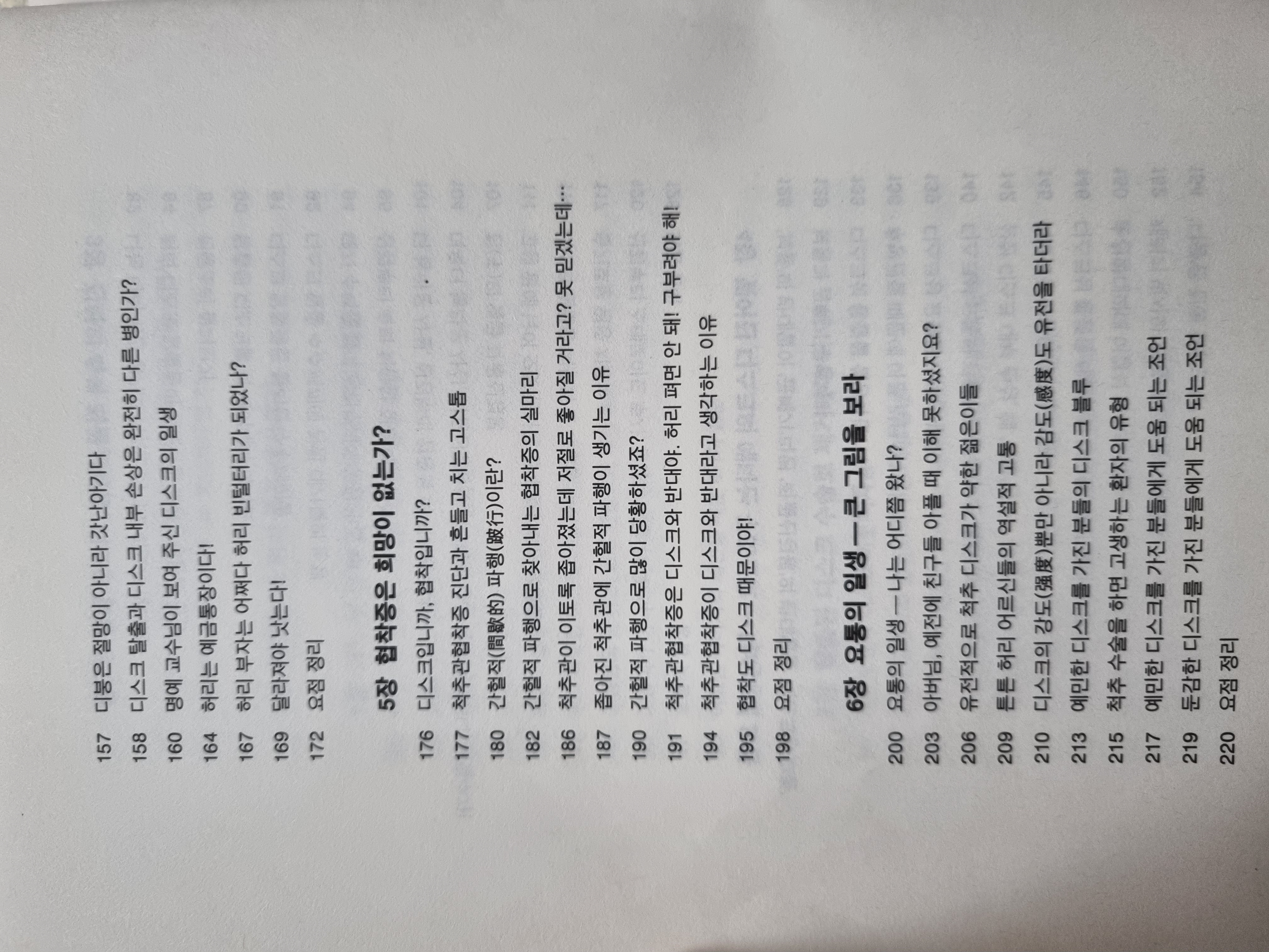 나는 7월 말까지 치료를 받았고 8월부터는 다른 곳은 아픈 곳이 없고, 종아리와 발바닥에 빈대떡이 붙어 있는 것 같은 감각이 있어서 불편함을 겪고 있다. 다리의 근육 약화나 대소변 장애없이 통증만 있다면 수술이 필요한 경우는 드물다는 말을 믿고 척추위생을 지키려고 노력하며 자연치유력에 의지하고 있다. 교수님 말대로 24시간 요추전만을 유지하는 척추위생을 지키려면, 허리는 요추전만으로 고정하고 엉덩이 근육으로 움직임을 만들어 내는 동작이 필수적이라고 한다. 결코 쉽지 않은 일이다.